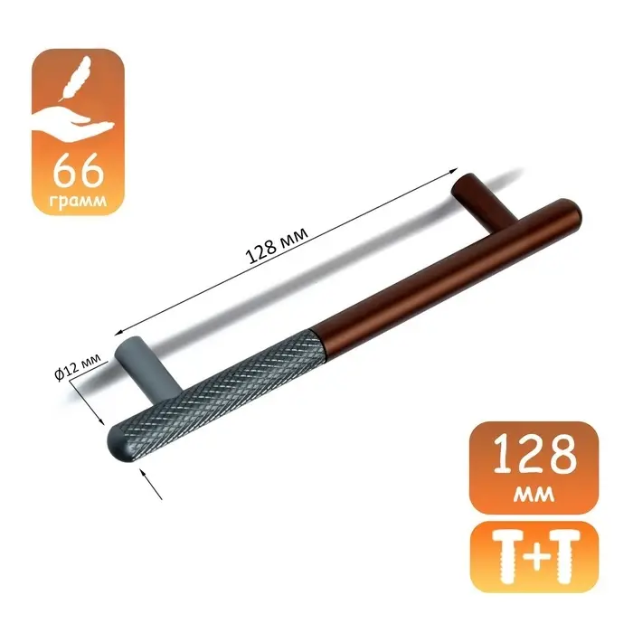 Ручка-рейлинг CAPPIO EPHRAM, м/о 128 мм, цвет серый/коричневый