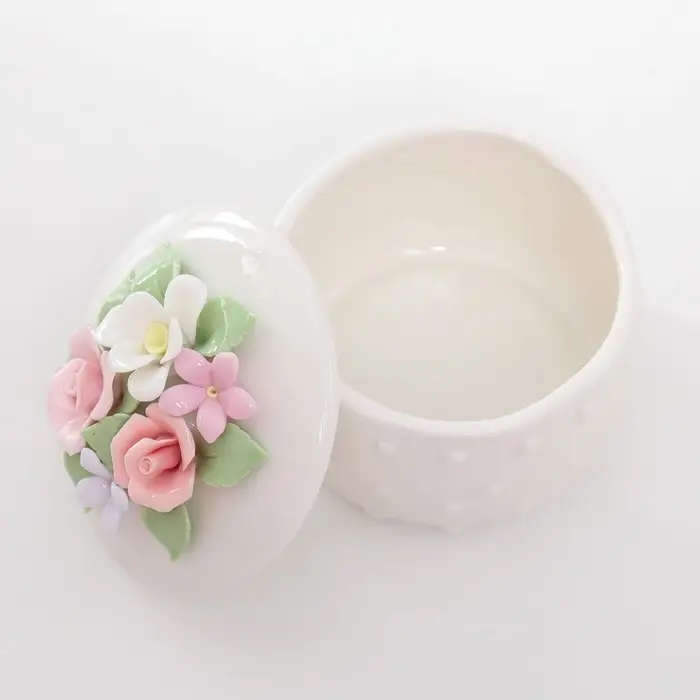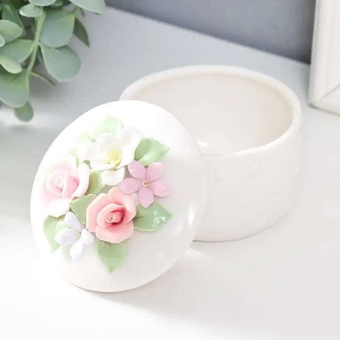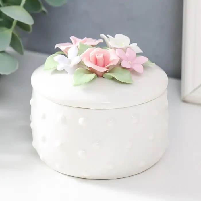 Шкатулка керамика "Цветочный сад. Горошек" белая 8х8х8см