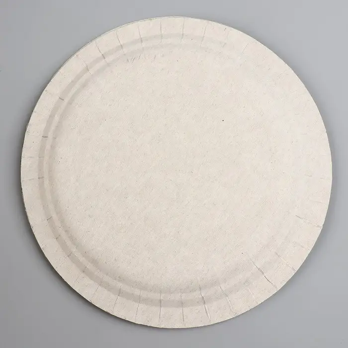 Тарелка сделана из плотного картона, что гарантирует её прочность и устойчивость к влаге.
