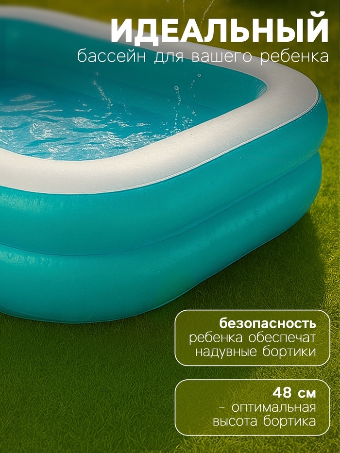Детский бассейн — это незаменимый элемент летнего отдыха на природе, который создаст атмосферу праздника у вас во дворе. В жаркий день дети будут купаться, брызгаться и играть в нём. Классический дизайн подойдёт для участка в любом стиле. Объёмные бортики позволяют удобно облокотиться на них, а малыши могут с лёгкостью перелезать через мягкие стенки.