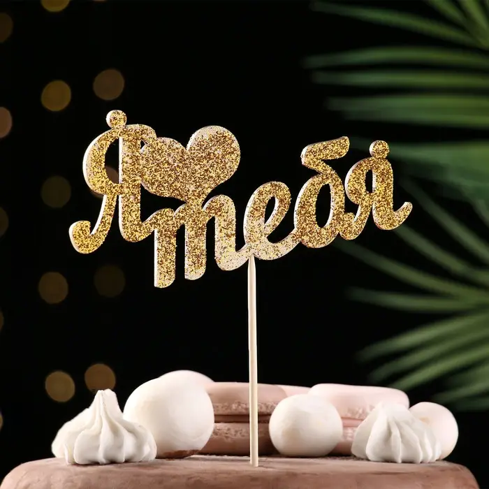 Топпер "Я люблю тебя" золотой глиттер 15х7,3 см