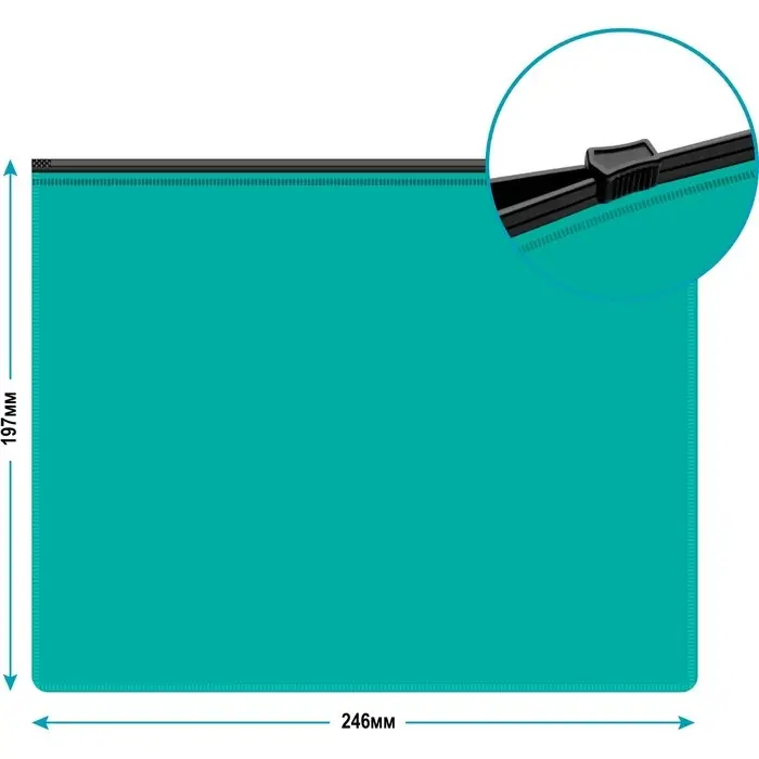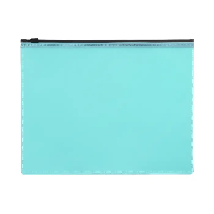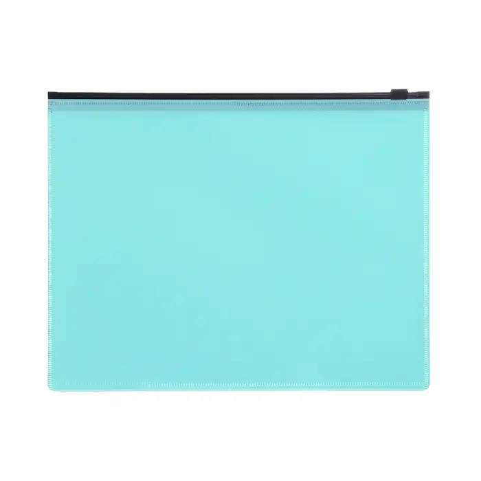 Папка-конверт на ZIP-молнии A5, 150 мкм, Calligrata Pastel, прозрачная, чёрная молния, бирюзовая