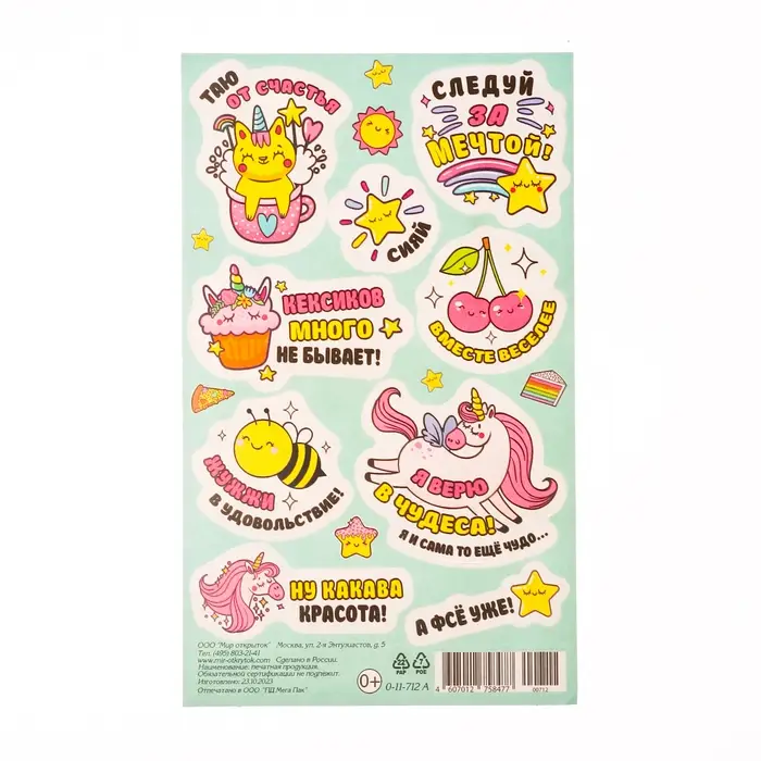 Наклейки «Единорог» 10×16 см
