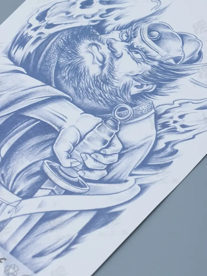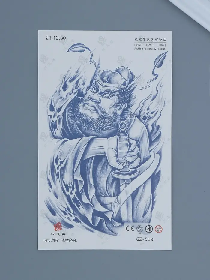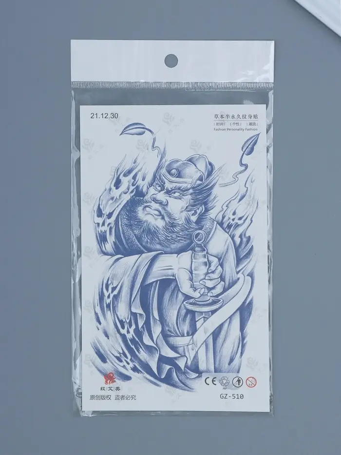 Татуировка на тело "Китайский воин с мечом - поединок" 18х11 см