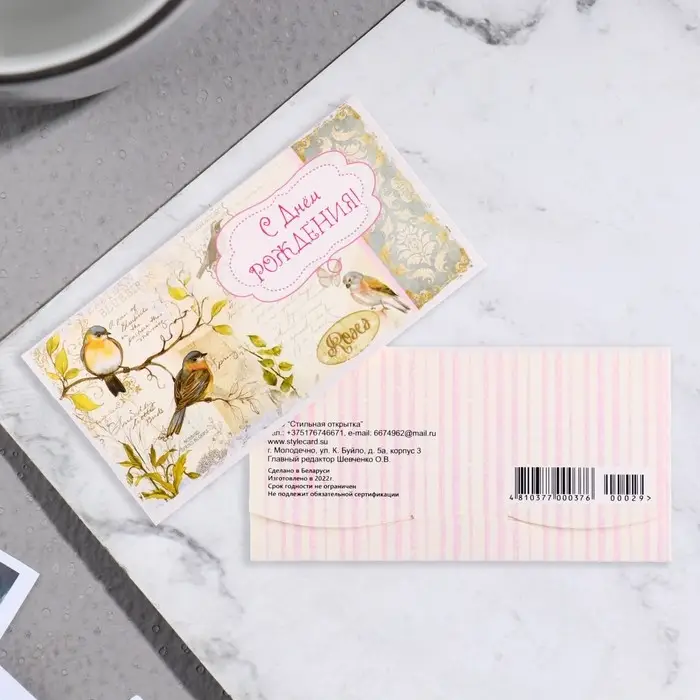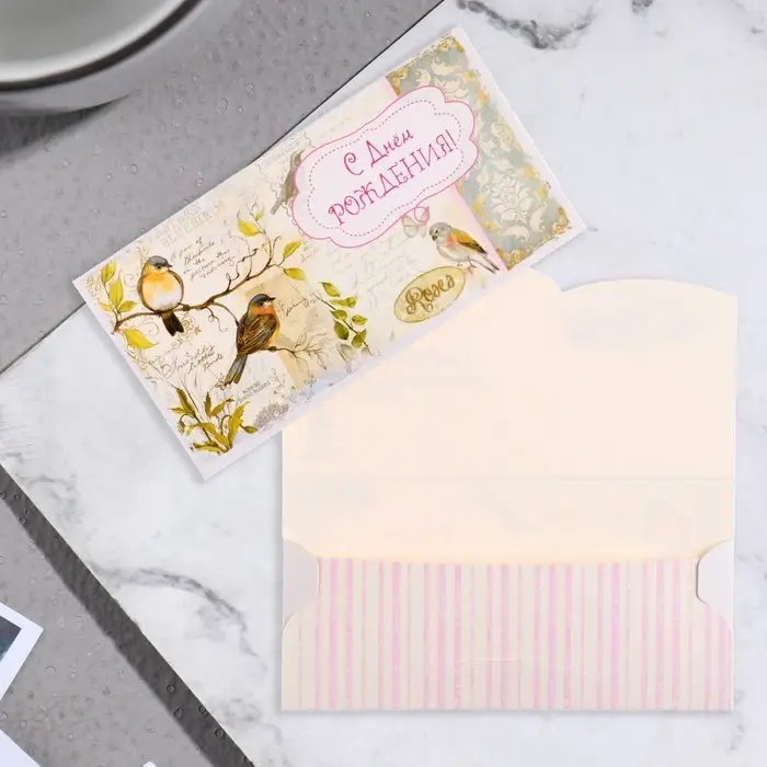 Конверт для денег "С Днем Рождения!" птицы