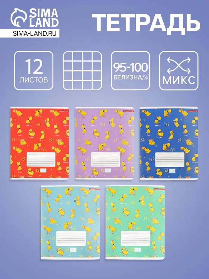 Тетрадь 12л кл Забавные утята, обл карт, МИКС