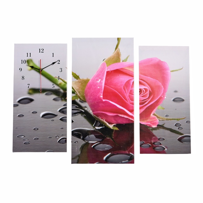 Часы-картина настенные, модульные "Розовая роза", бесшумные, 60 х 80 см, триптих