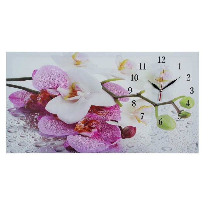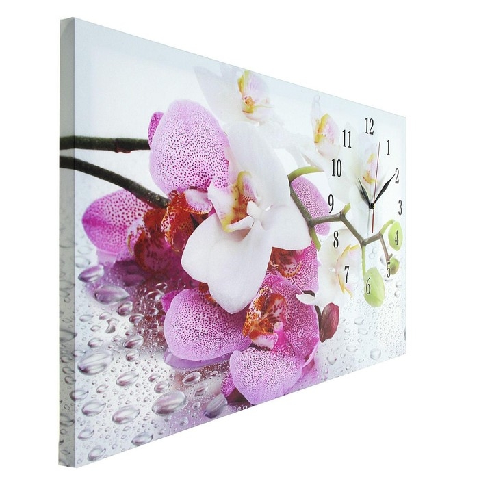 Часы-картина настенные, на холсте, интерьерные, бесшумные "Орхидеи", 40 х 76 см