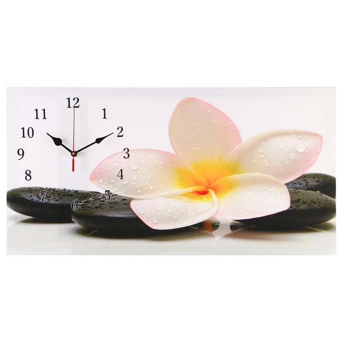 Часы-картина настенные, на холсте, интерьерные, бесшумные "Белый цветок на камнях", 40 х 76 см 20451