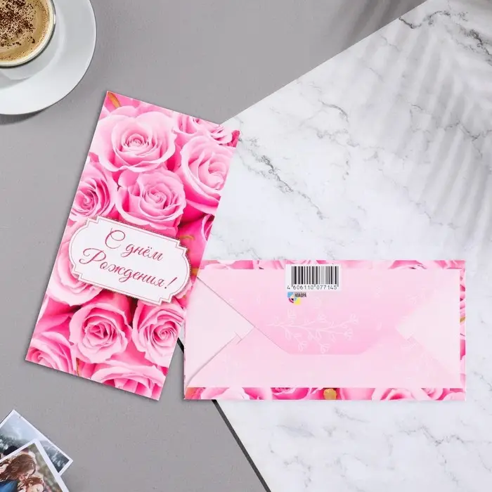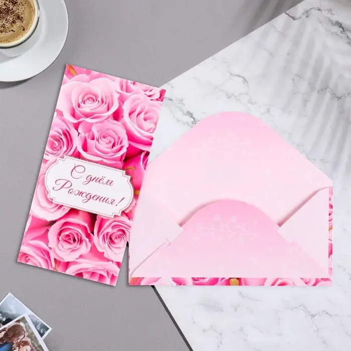 Конверт для денег "С Днём Рождения!" розы, 17х8 см