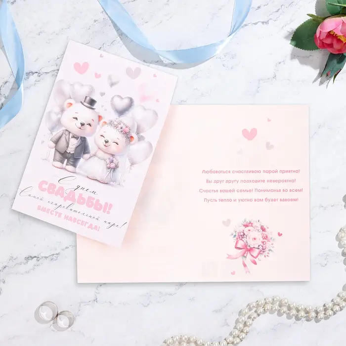 Открытка "С Днём Свадьбы!" медвежата, А5