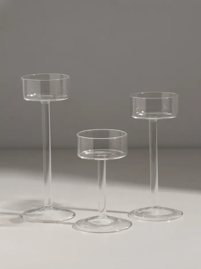 Подсвечник стекло "Моник" прозрачный d=5,4 см набор 3 шт 6,5х15 6,5х11 см 6,5х17 см