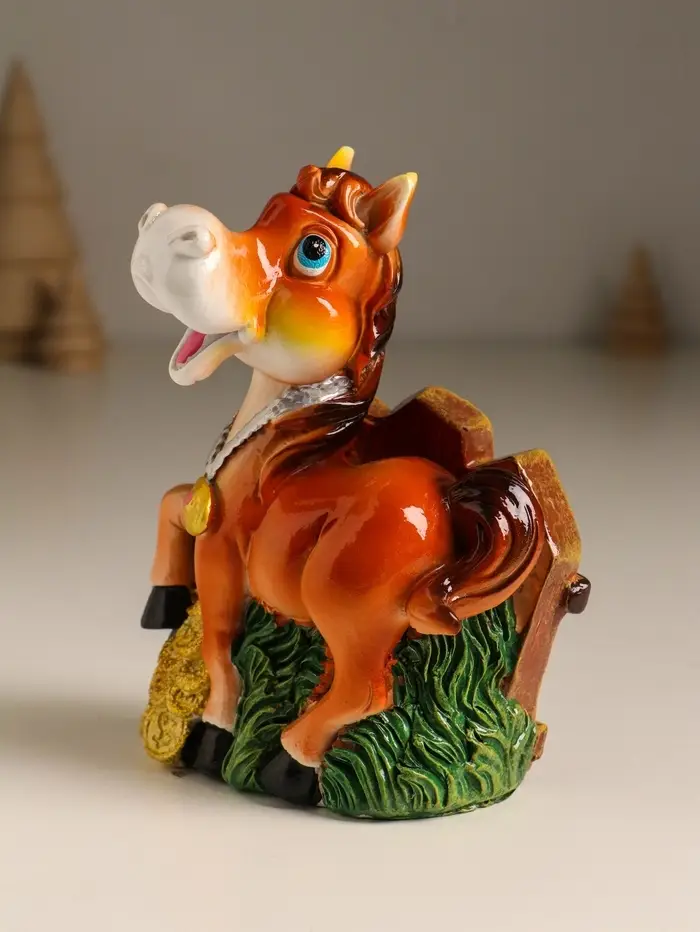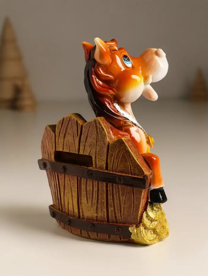 Копилка полистоун "Коняшка у забора с монетками" 9,5х5х12,8 см