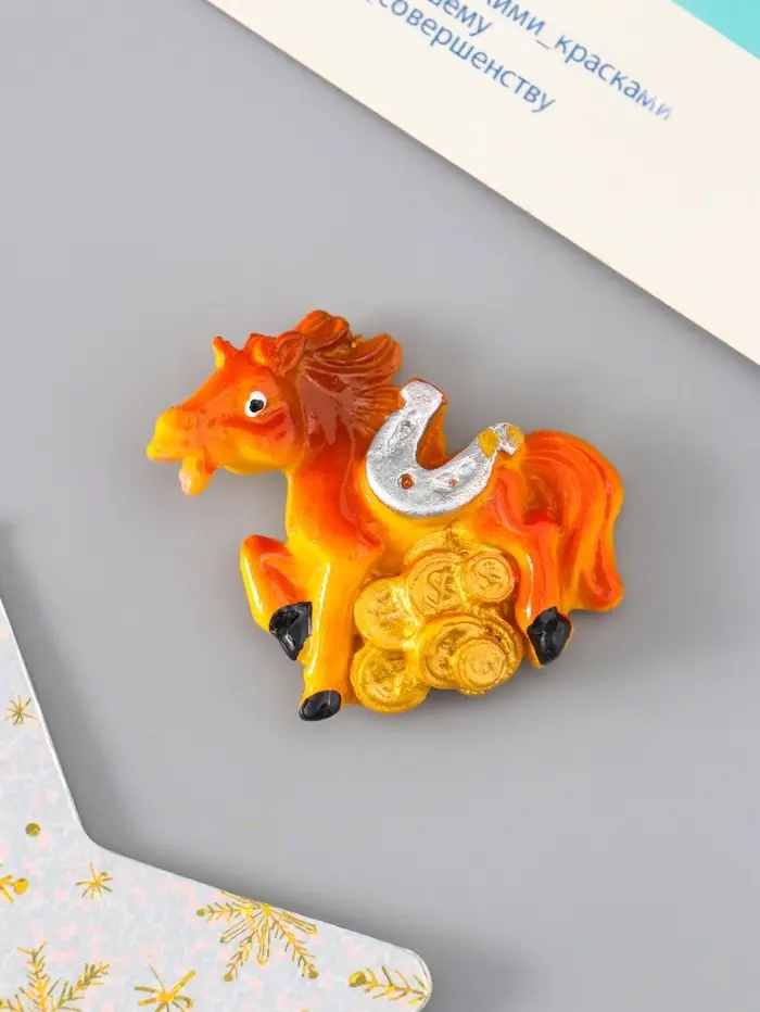 Магнит полистоун "Коняшка с монетами и подковой" МИКС 3,5х4 см