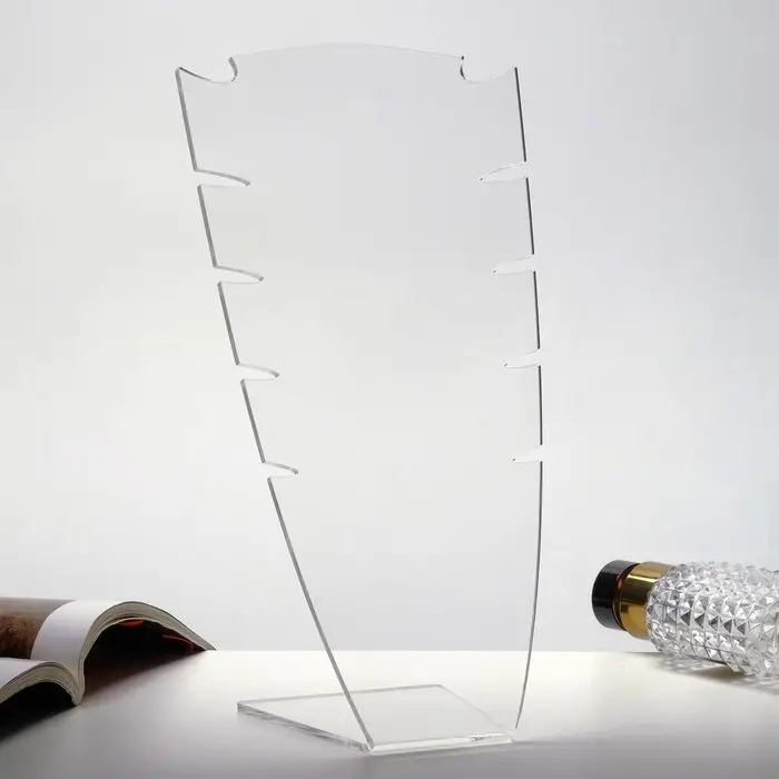 Стильная подставка для колье размером 13×8×24 см выполнена из прочного прозрачного оргстекла толщиной 3 мм. Её лаконичный дизайн идеально подходит для презентации украшений. Подставки из оргстекла (листовой акрил). Благодаря использованию 100% акрила, подставки имеют идеальную прозрачность, высочайший блеск и шикарный внешний вид. ВНИМАНИЕ: Изделия поставляются в матовой защитной плёнке, белого, синего, зелёного или прозрачного цвета, которую необходимо удалить перед оценкой качества или перед использованием.
