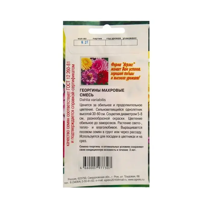Семена Цветов Георгина махровая смесь, 0,2 г