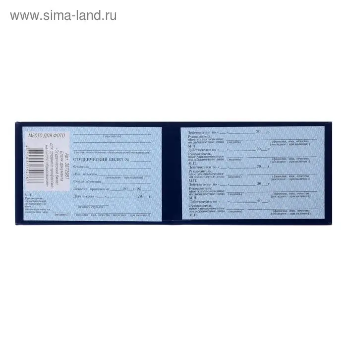 Студенческий билет для среднего профессионального образования 100 х 65 мм, Calligrata, жёсткая обложка, бумвинил, цвет синий