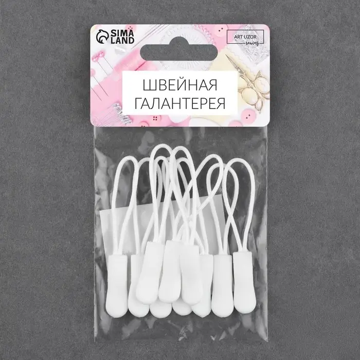 Язычок - пуллер для молнии, 2.5 см, 6×0.8 см, 10 шт., белый