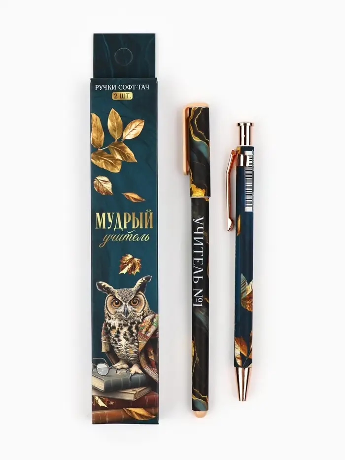Набор ручек пластик софт-тач "Мудрый учитель", 2 шт, синяя паста 0.7 мм