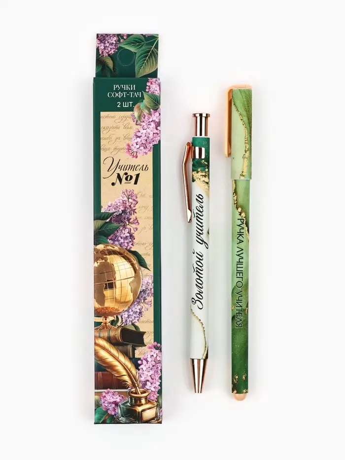 Набор ручек пластик софт-тач "Учитель", 2 шт, синяя паста 0.7 мм