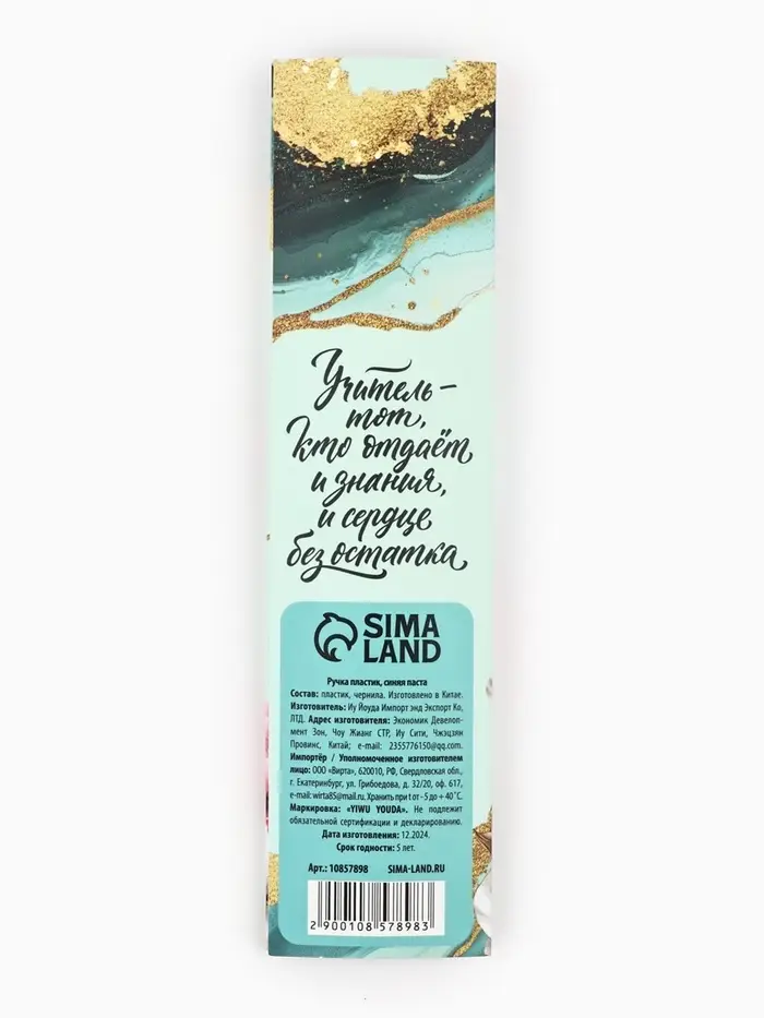 Ручка пластик в конверте "Любимому учителю", синяя паста 0.7 мм