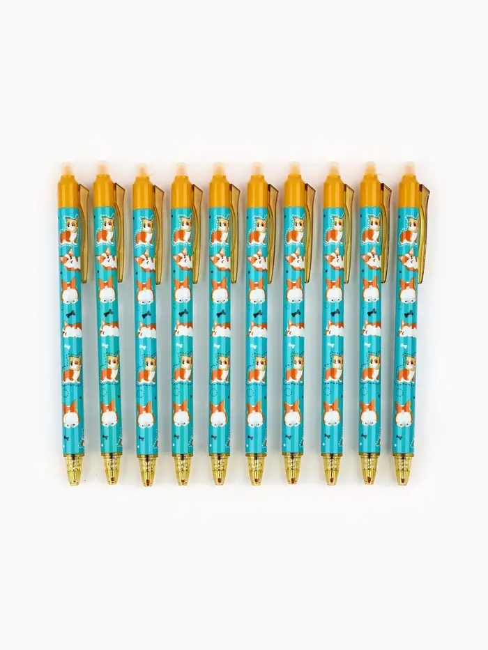 Ручка пластик пиши-стирай автоматическая "Милый корги", синяя паста 0,7 мм