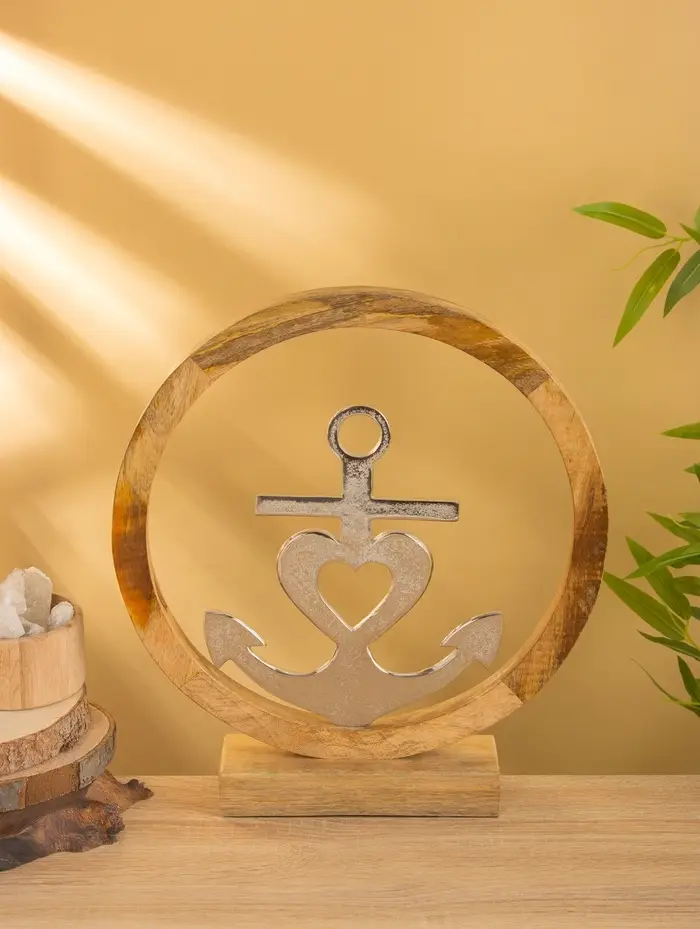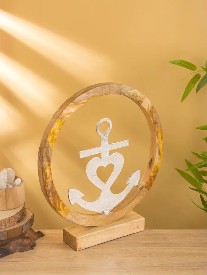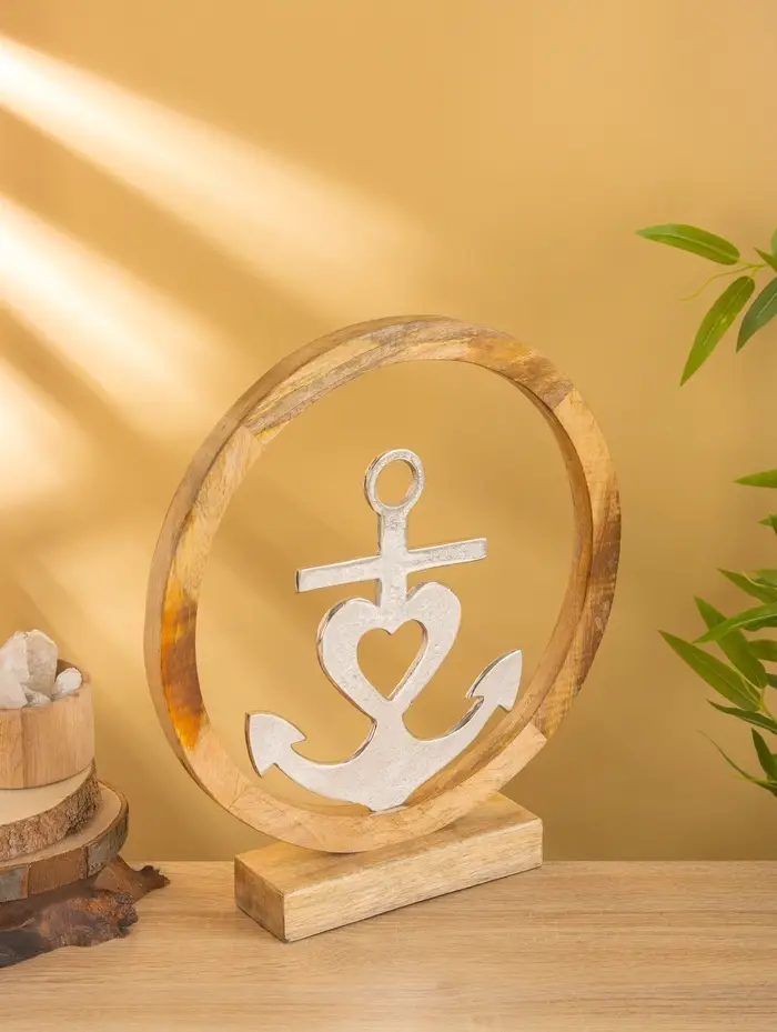 Якорь на подставке, 36×7×39 см, алюминий, дерево