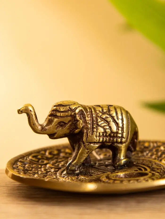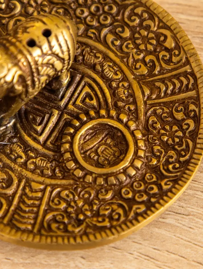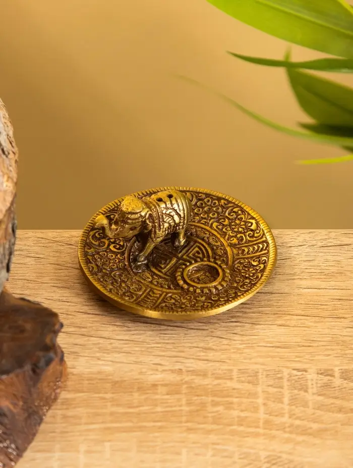 Подставка под благовония "Слоник на тарелке" латунь 7 см