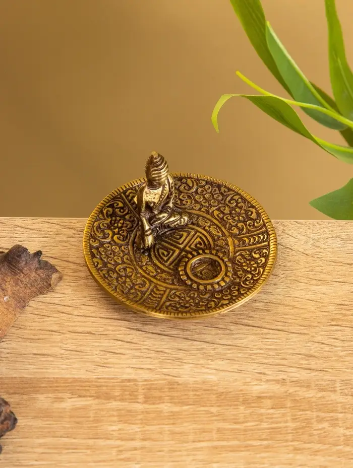 Подставка под благовония "Будда на тарелке" латунь 7 см