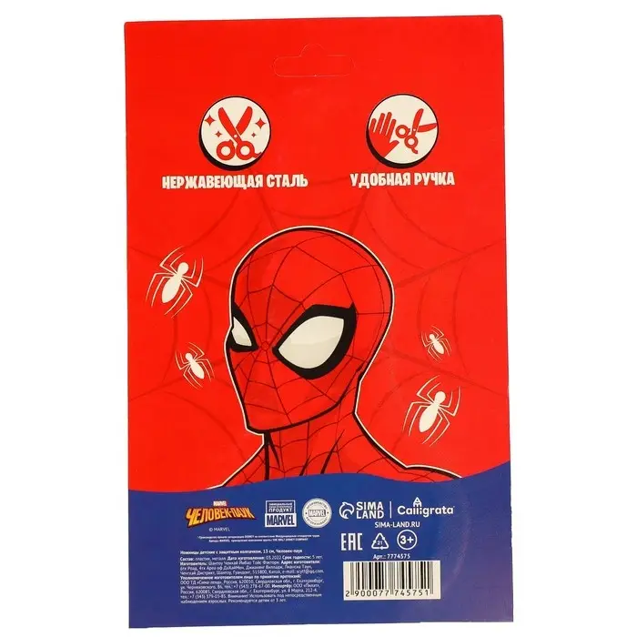 Ножницы детские 13 см, с защитным колпачком, Человек-паук
