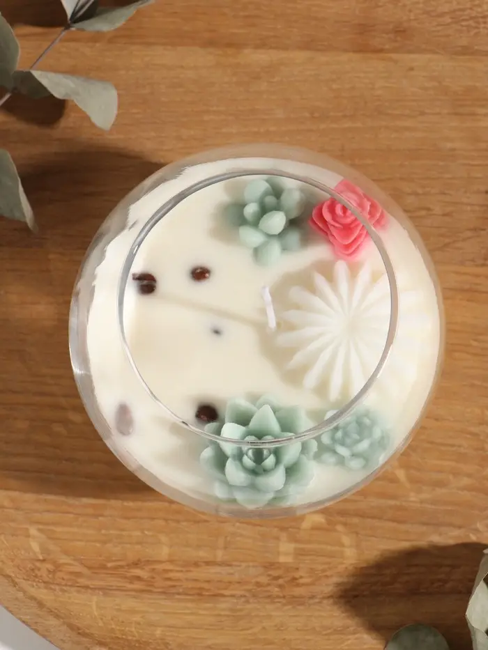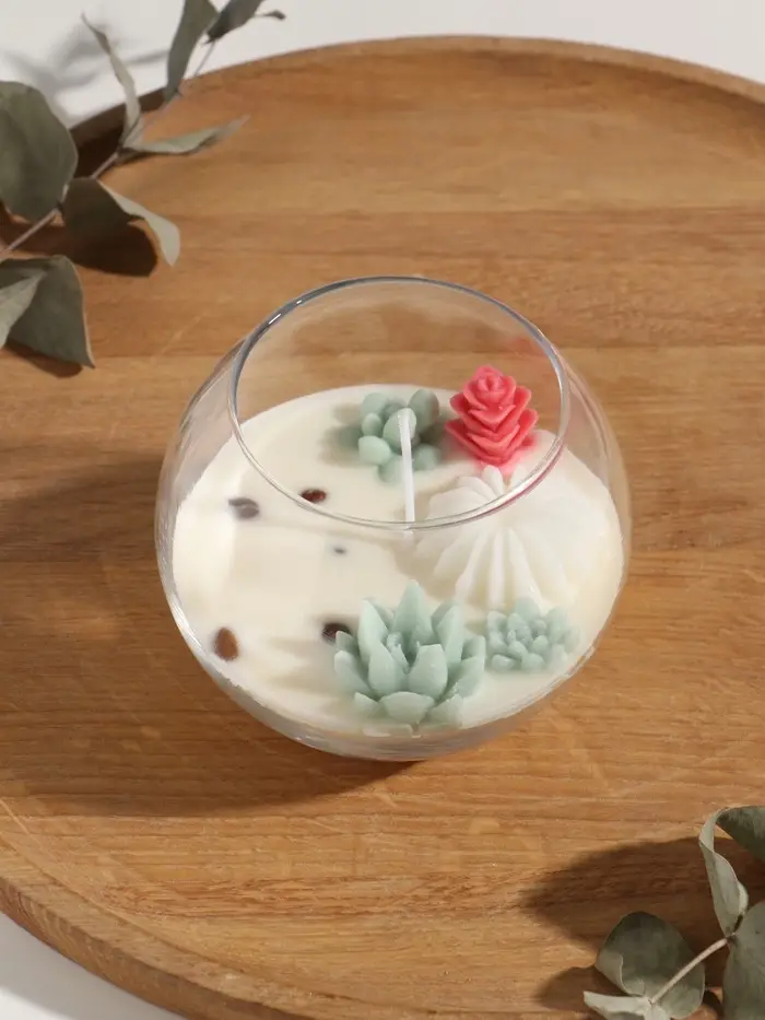 Свеча ароматическая в подсвечнике "Суккуленты" 1 фитиль аромат кофе 11х11х10 см