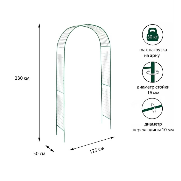 Арка садовая, разборная, 230 × 125 × 50 см, металл, зелёная, «Сетка», Greengo