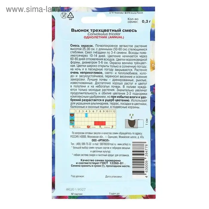 Семена цветов Вьюнок Смесь окрасок трехцветный, О, ц/п, 0,3 г