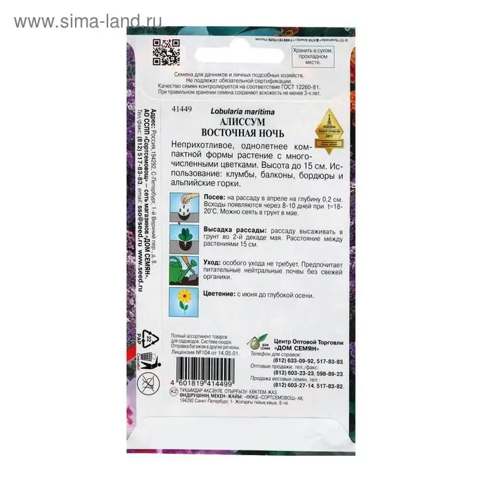 Семена цветов Алиссум "Восточная ночь", 170шт