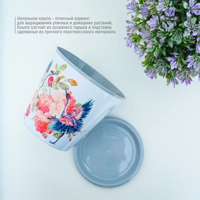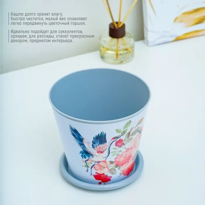 Горшок для цветов Доляна «Танец журавлей», 800 мл, цвет голубой