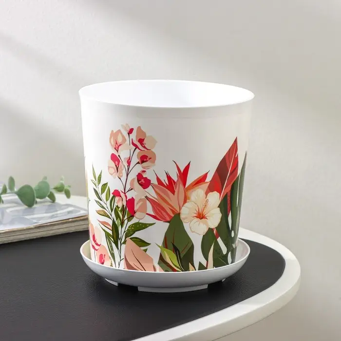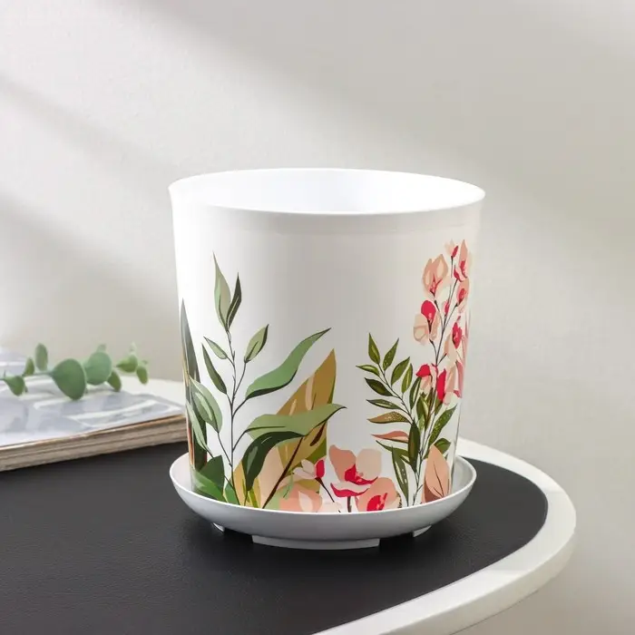 Горшок для цветов с поддоном Доляна «Тропический лес», 1,6 л, d=14 см, h=15,5 см, цвет белый