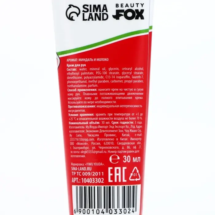 Крем для рук «От раздражения из-за людей», 30 мл, аромат миндаля и молока, BEAUTY FOX