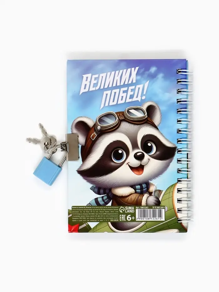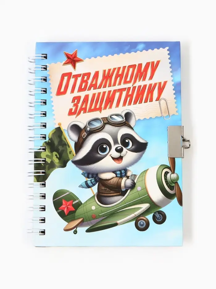Блокнот на замочке А6, 50 листов в твердой обложке «Отважному защитнику»