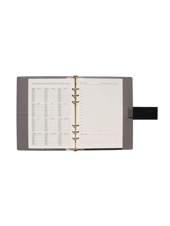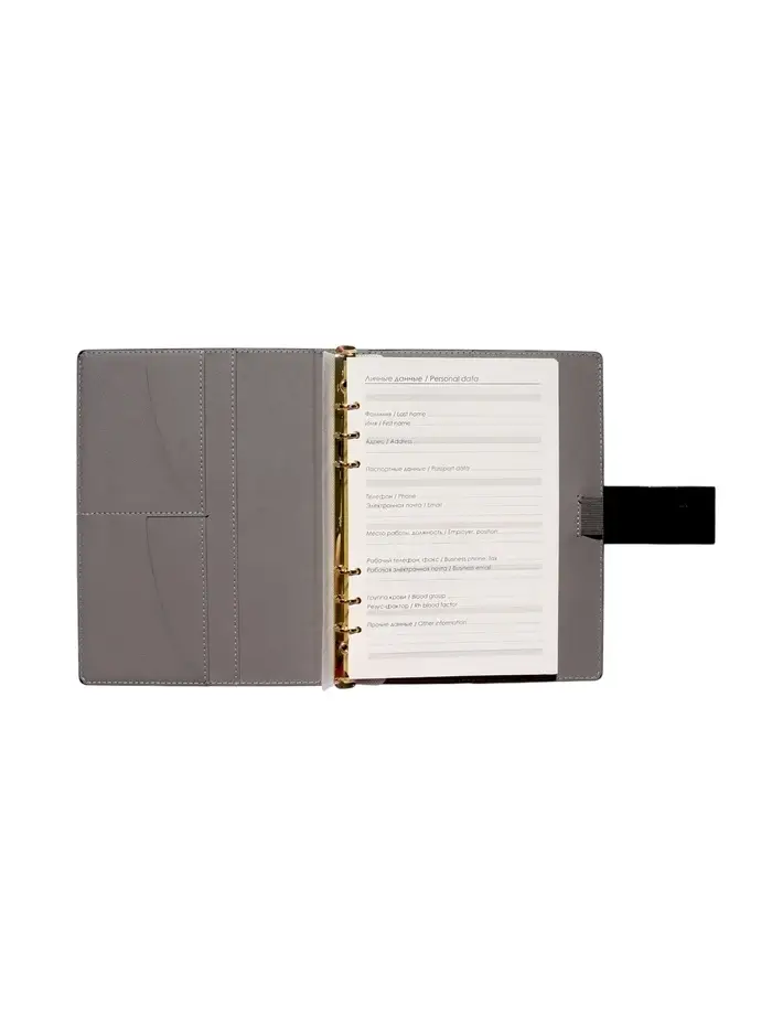 Органайзер на кольцах, А5, с хлястиком, 80л, линия, к/зам, Черный