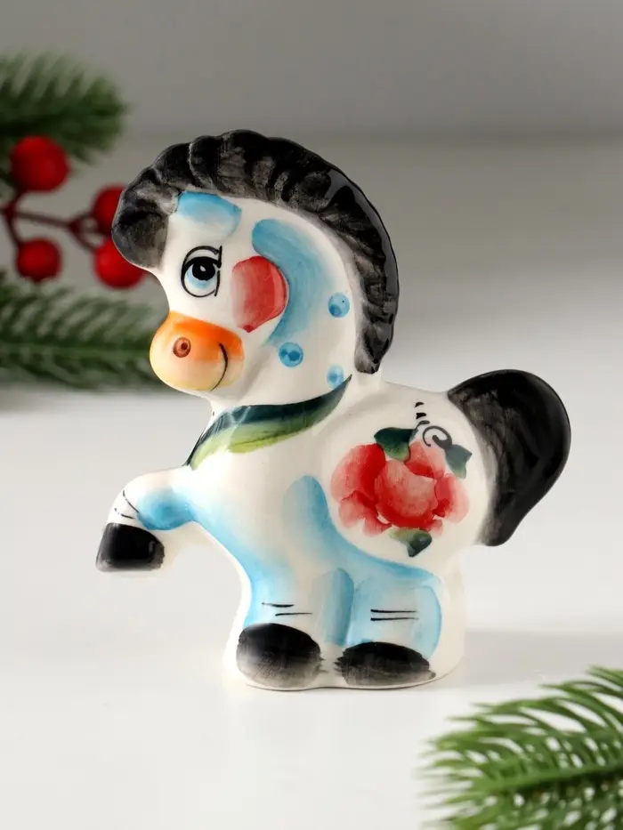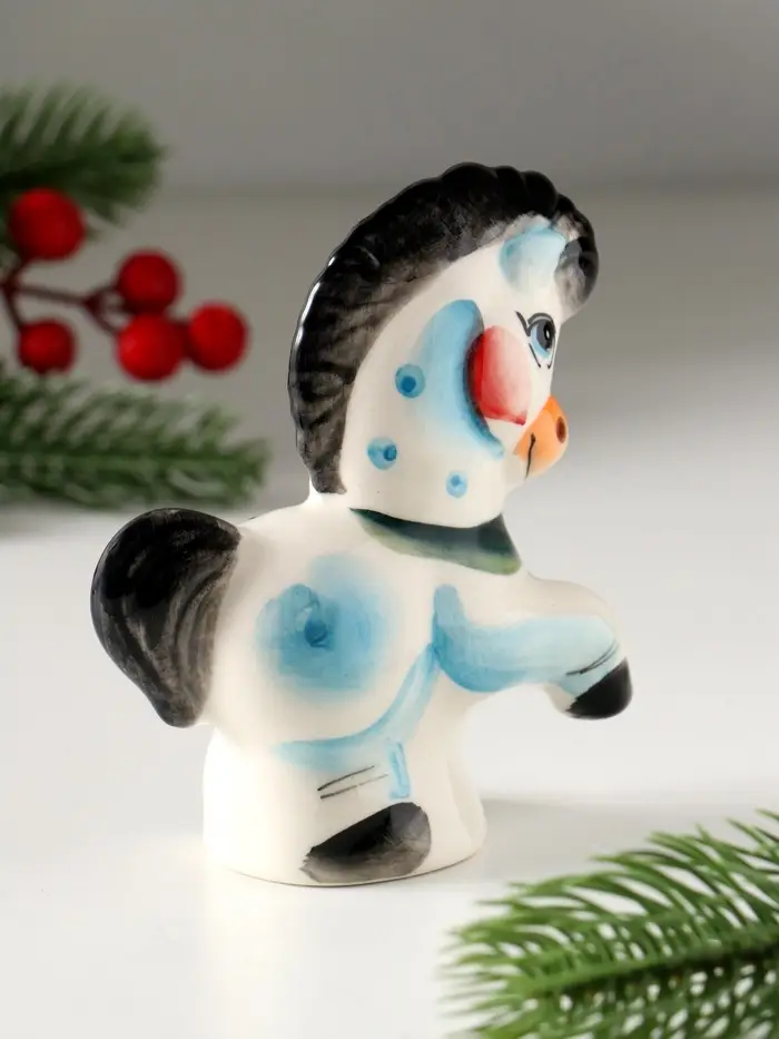 Сувенир Конь Буран большой, 11х10х4,5 см, гжель, цвет