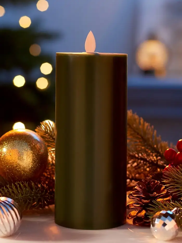 Светодиодная свеча восковая "Глубокий зеленый", 20x7 см, АААx3 (не в компл.), Т/БЕЛЫЙ
