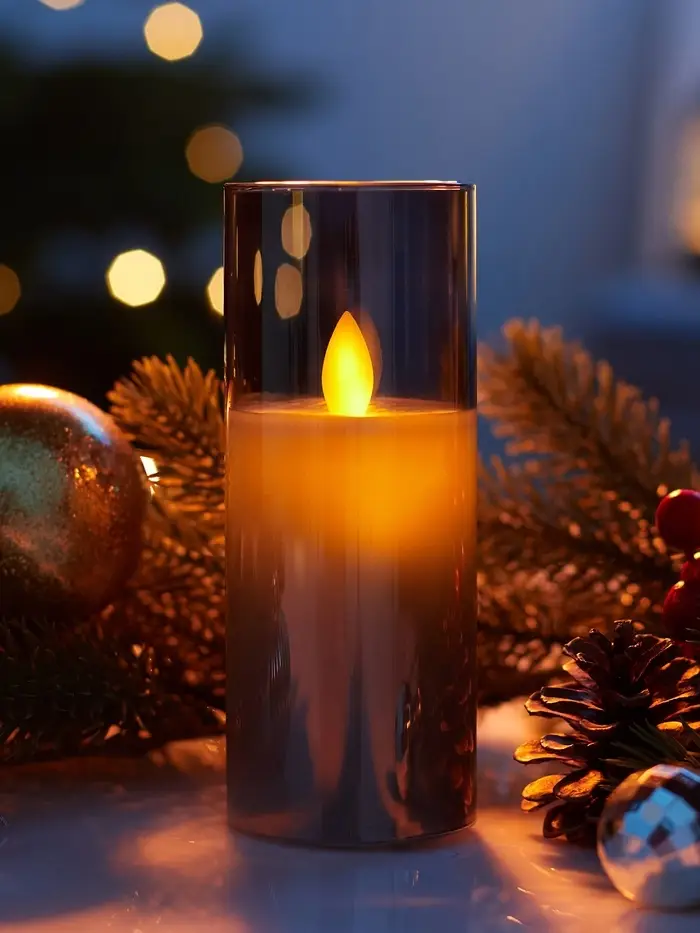 Светодиодная свеча "Серебристая" 14х5.5 см, AAx2 (не в компл.), Т/БЕЛЫЙ