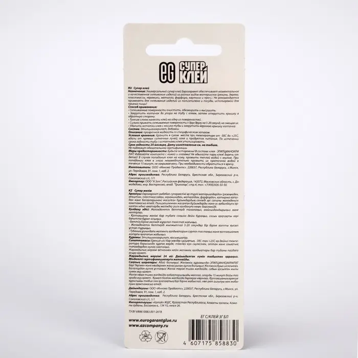 Суперклей "Еврогарант", моментальный, блистер, 3 г