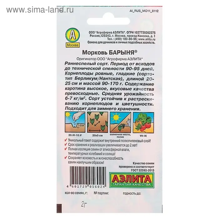 Семена Морковь "Барыня", 2 г