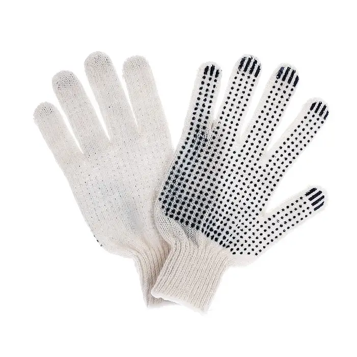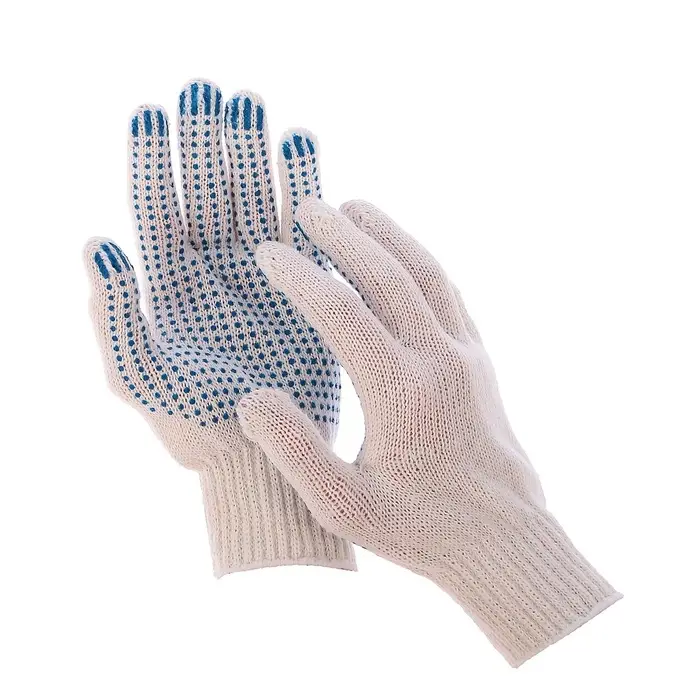 Перчатки рабочие, хб, вязка 7 класс, 3 нити, размер 9, с ПВХ точками, белые