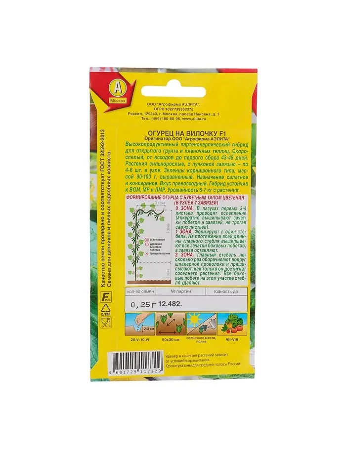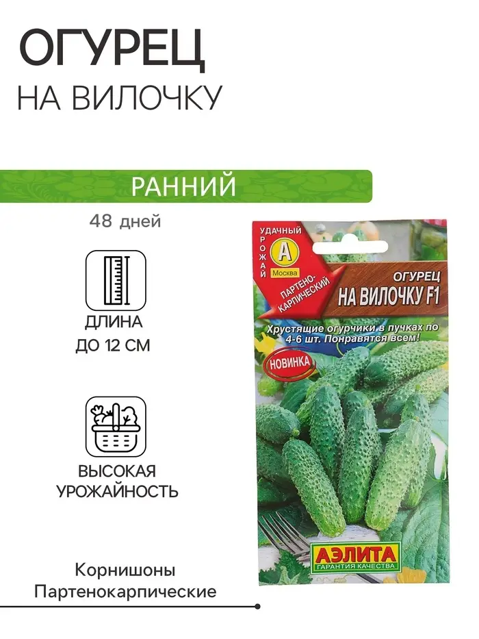 Семена Огурец "На вилочку" F1, скороспелый, партенокарпический, 10 шт