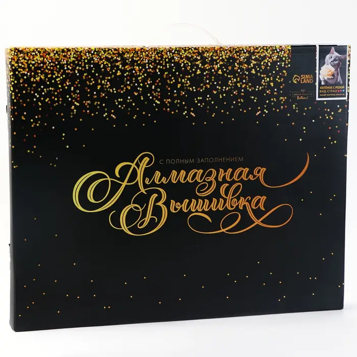 Алмазная вышивка полное заполнение "Котенок с розой", на раме, 40*50 см