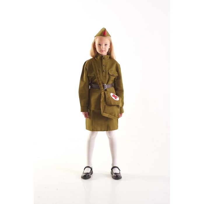 Костюм военного "Санитарка" для девочки, 3-5 лет рост 104-116 см превратит юную леди в отважную героиню, спасающую жизни на поле боя. Комплект стилизован под форму времён Второй мировой, чтобы максимально передать атмосферу боевых дней.