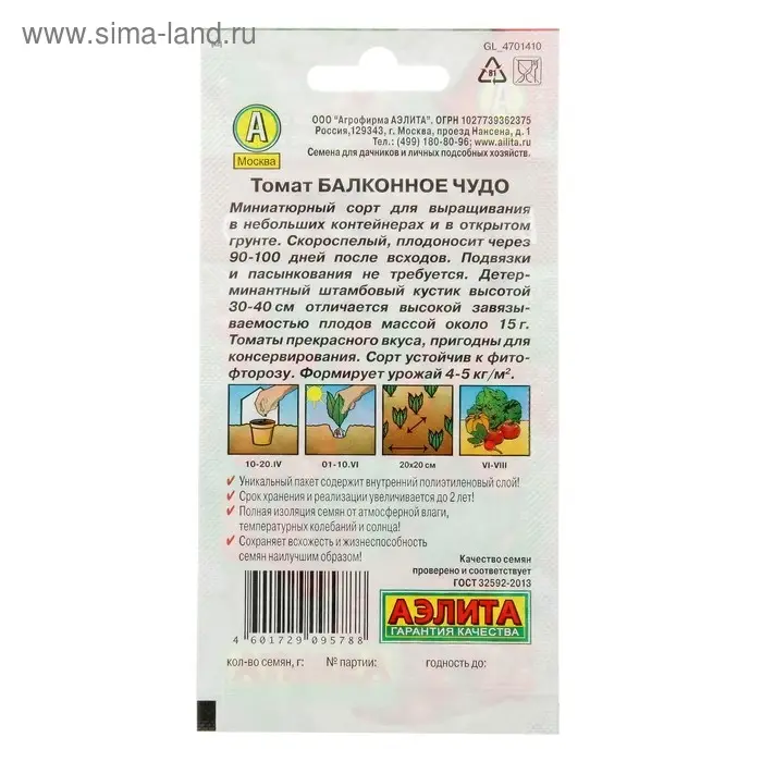 Семена Томат "Балконное чудо", детерминантный,низкорослый, 20 шт