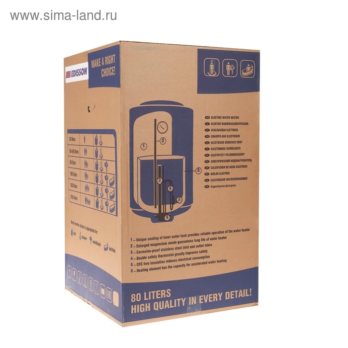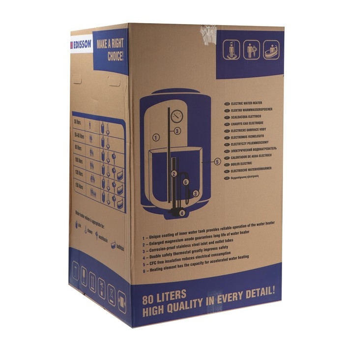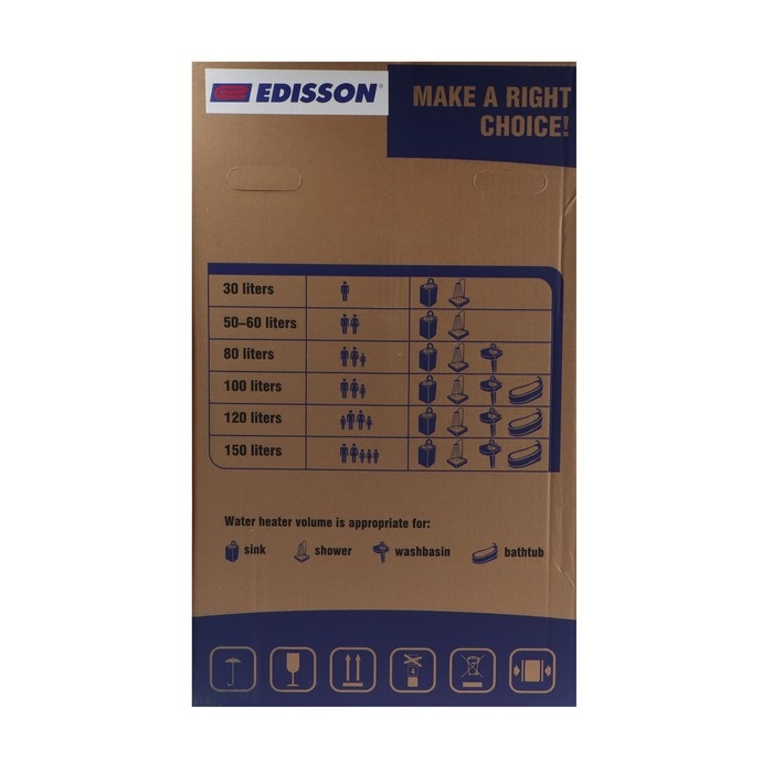 С водонагревателем EDISSON в доме всегда будет горячая вода. Такой агрегат сделает вас независимым от коммунальных служб. Данная модель органично впишется в интерьер благодаря классическому дизайну.